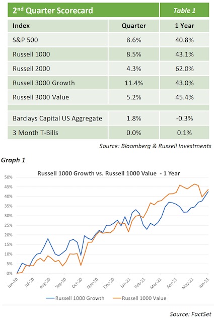 • The U.S equity markets rallied in Q2 with the S&P posting a gain 8.2%. This mark edits fifth straight quarterly gain in the wake of the 20% pull back in Q1 of 2020