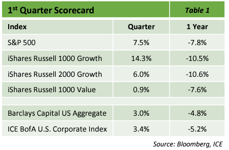market jumping The S&P 500 rose 7.5% in the first quarter as investors piled into tech stocks
